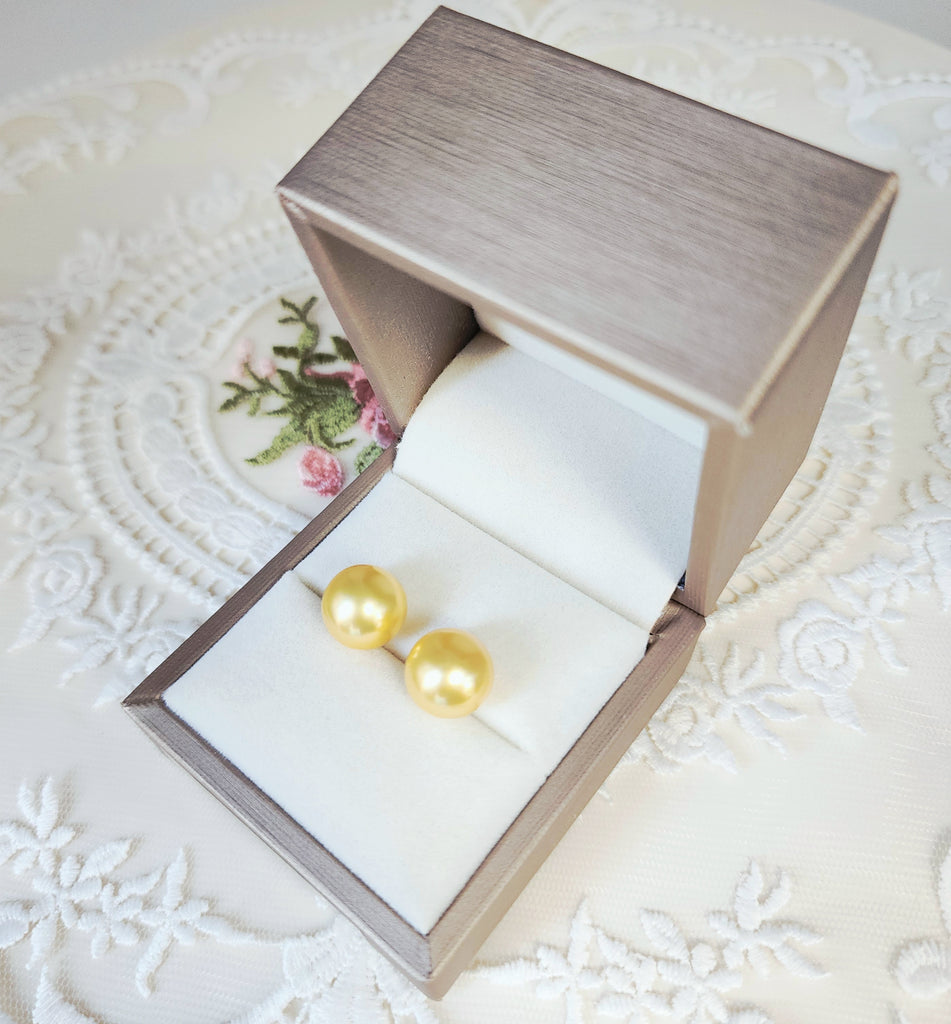 Perfectly round, champagne gold , good skin sheen, minor imperfections.